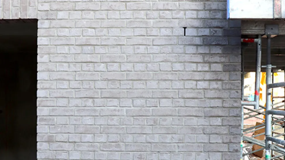 L’entreprise Miroux de Lens réalise le gros-œuvre et pour les maçonneries ; ce sont les briques de parement moulées main Pagus Gris de Wienerberger et briques Porotherm qui sont utilisées.