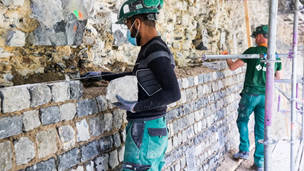 Menés par les entreprises Bajart, BAM Galère et Artès TWT, les travaux portent sur 4 000 m² de murailles qui devront être remises en parfait état à l’identique ; c’est-à-dire en utilisant en priorité la pierre d’origine.