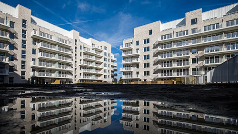 Le nouveau quartier "City Dox", situé à la périphérie de la ville d'Anderlecht en Belgique, est un projet mixte comprenant un bâtiment de bureaux et deux bâtiments résidentiels.