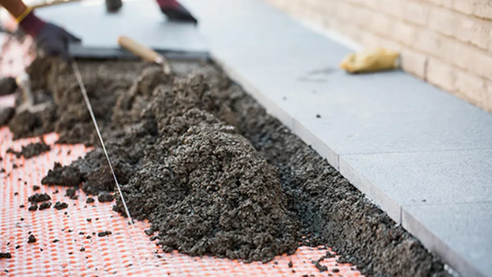 En coopération avec Cantillana, qui lui a recommandé une solution complète, Wim a utilisé une combinaison de chape drainante Chape Drain 25 en tant que support pour les charges lourdes comme les voitures et de colle à carrelage ultra-flexible - de type C2TE S1- Cera’fix Supraflex blanc, pour le collage de carreaux en céramique de 3 cm d'épaisseur.